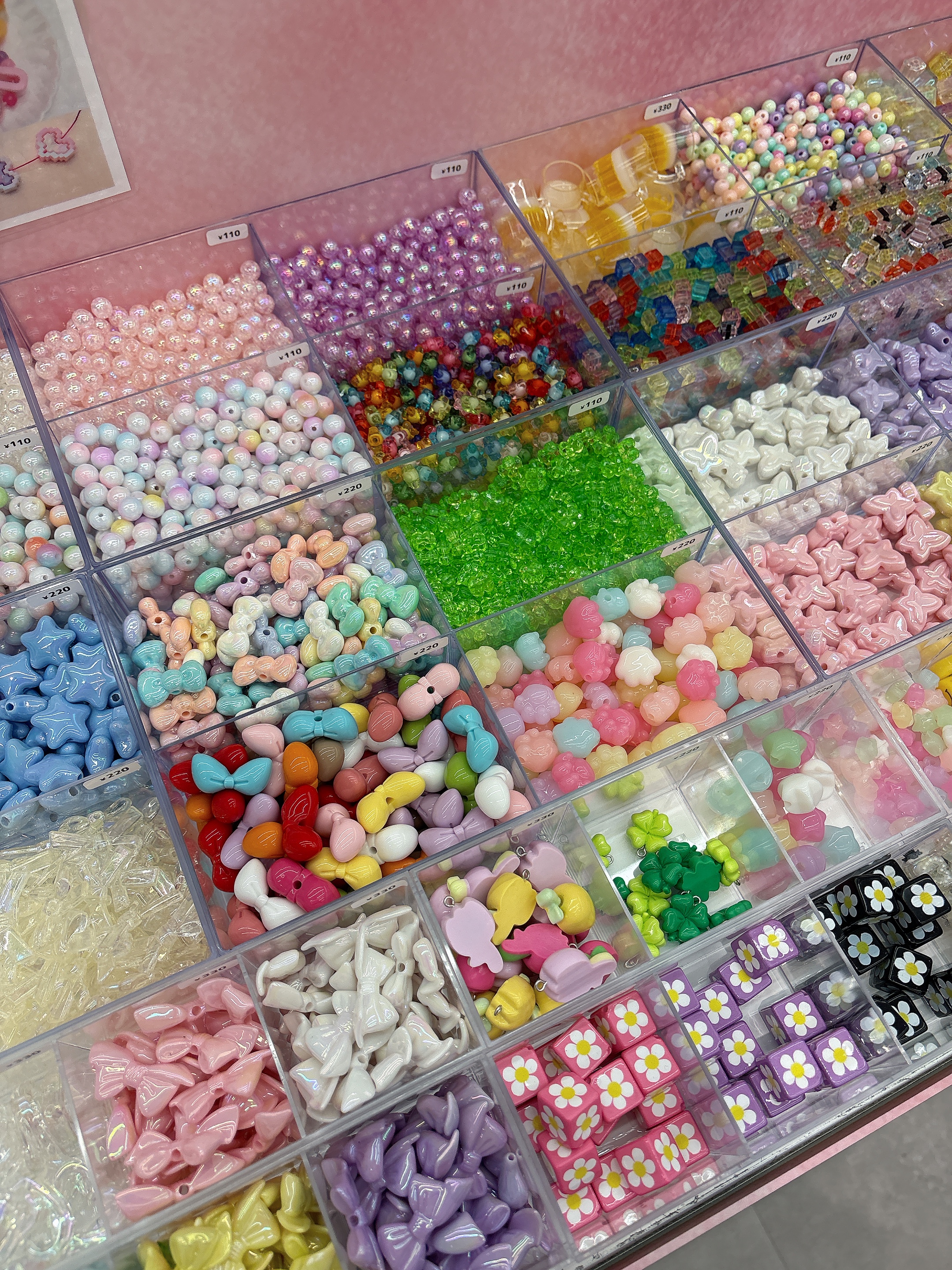 店内に並ぶパーツはなんと300種類以上。はい、迷います(笑)。永遠に迷い続けてしまいそうでした。どれもこれも可愛くて、組み合わせは無限大なので、皆さんも迷う覚悟をして足を運んでください。組み合わせ例も店内に飾ってあるので、参考にしながら選んでみてくださいね。