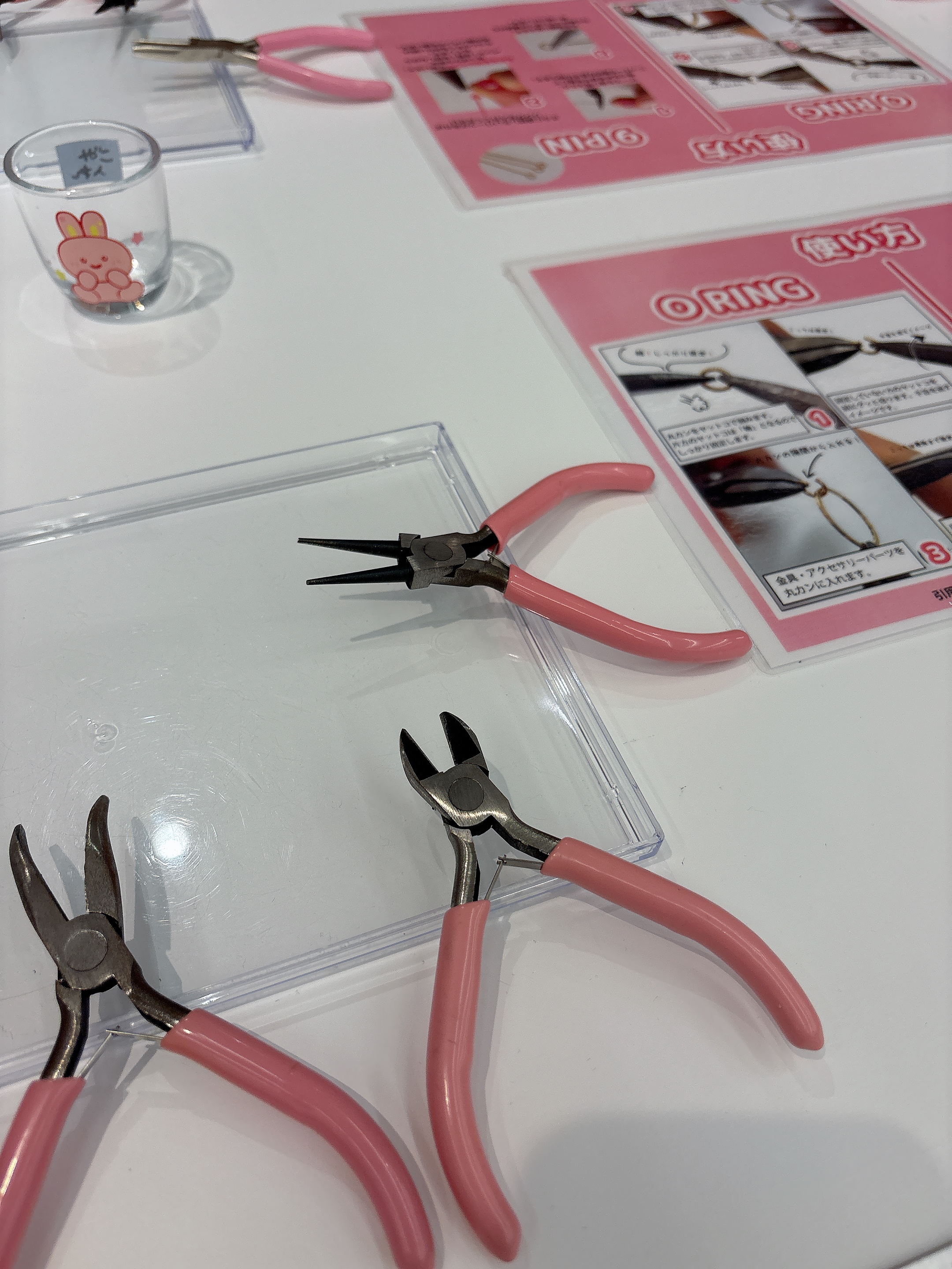 店内には制作スペースが用意されているので、お試しで作ってみるだけでなく、購入した商品を完成させて帰ることもできますよ~。私も実際に作ってみたらパーツのバランスがおかしかったので、1つ変更しました。