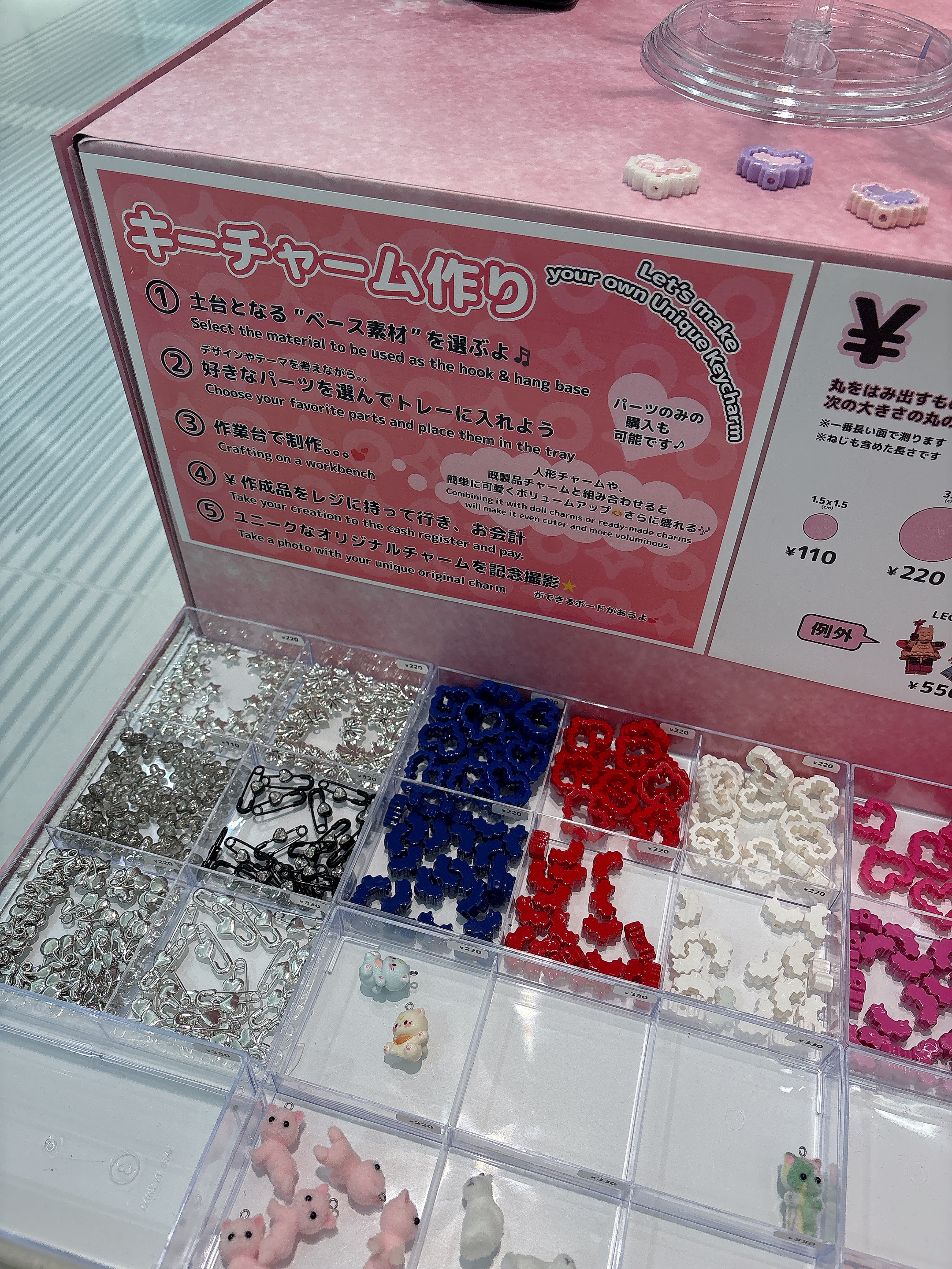 こちらでは、たくさんのパーツから好きなものを選んで、オリジナルのキーチャームを作ることができるんです♪ キーチャーム、手軽にバッグにつけて印象を変えることができる、今や欠かせないオシャレアイテムですよね。私もたくさん持っているのですが、オリジナルのものは作ったことがないので挑戦してみました。