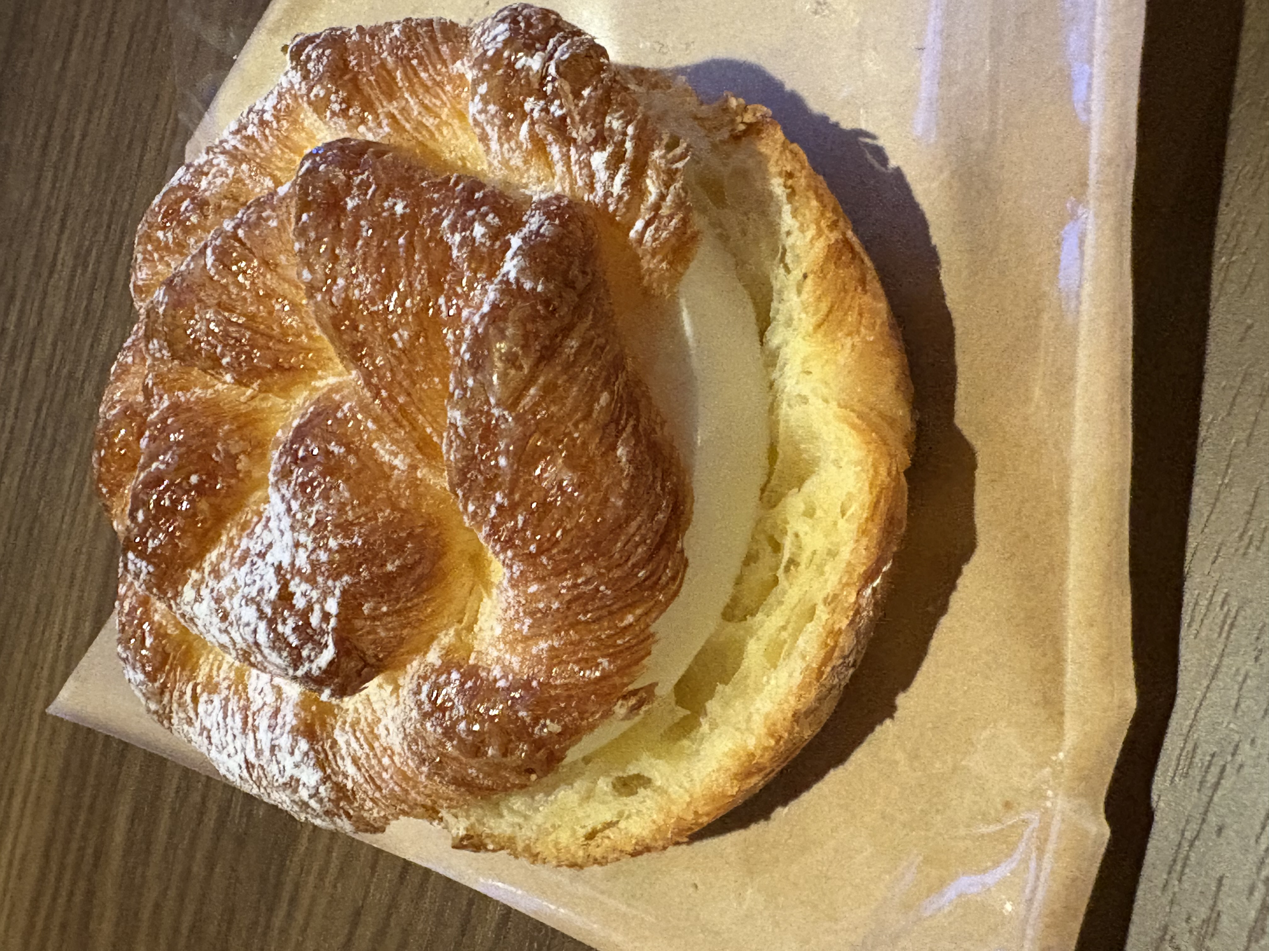 発酵バター香るデニッシュサンド。サクサクのデニッシュに発酵バター入りのクリームをサンドしたおやつです。デニッシュの食感と、バターの風味がたまらない組み合わせで、束の間の幸せな時間が過ごせました。日々のご褒美を探すのにもぴったりの場所ですよね。