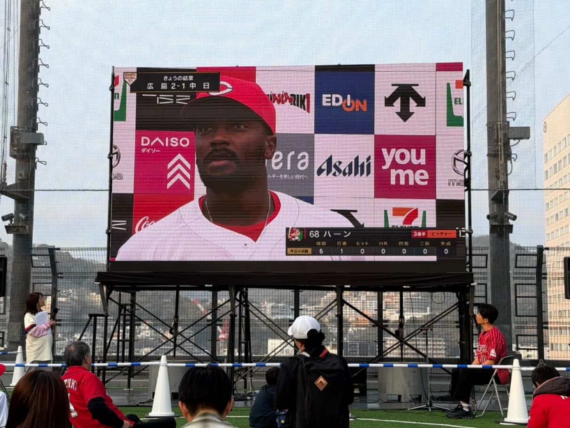 3連戦の中日には広島駅のミナモア9階ソラモア広場でパブリックビューイングを開催!!