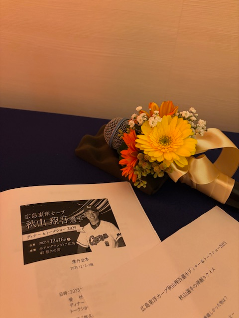 トークでは、カープでの4年目のシーズン、そしてプロ15年という節目である2025年の振り返りやオフシーズンの過ごし方、毎年恒例のRCCラジオの収録話、大学時代を過ごした八戸での講演会や野球教室の話等で盛り上がりました。