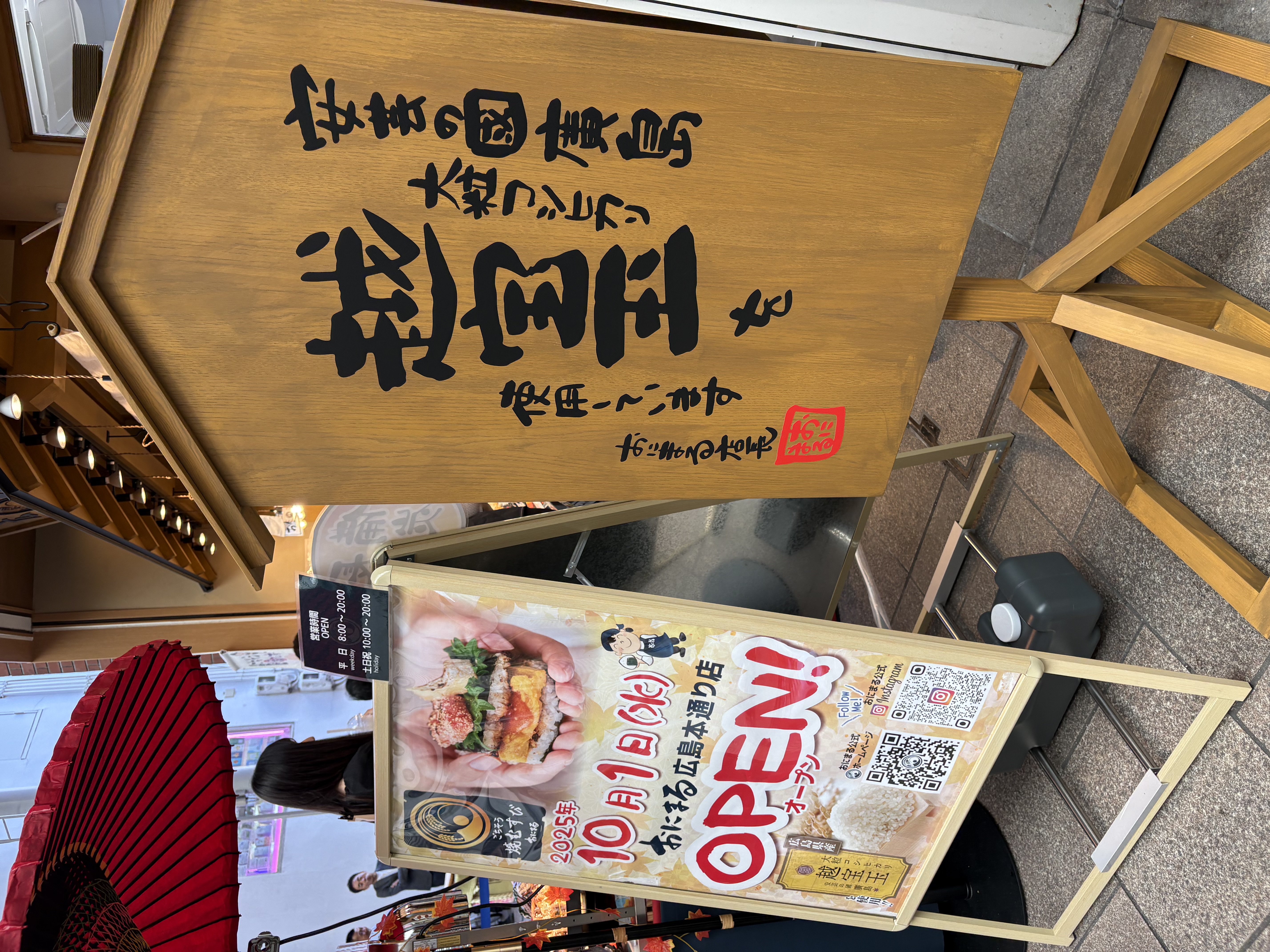 今回も最新号の「NEWSな本通」特集に載せきれなかった本通の最新情報をお届けしますよ~。10月1日にオープンしたばかりの『ごちそう焼むすび おにまる 広島本通り店』です。おむすびを買い求める人の長い行列を目にした方も多いのではないでしょうか~?