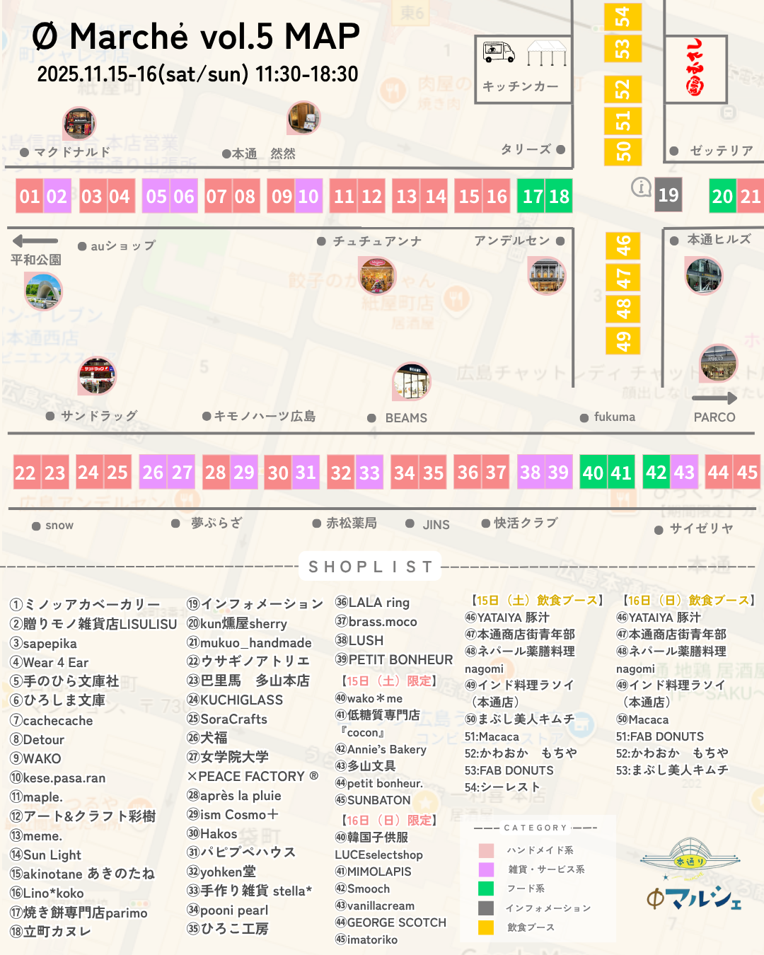 ウーマルシェVOL.5の出店者様のブースの場所を記載したエリアマップ&ショップリストをご紹介いたします◎