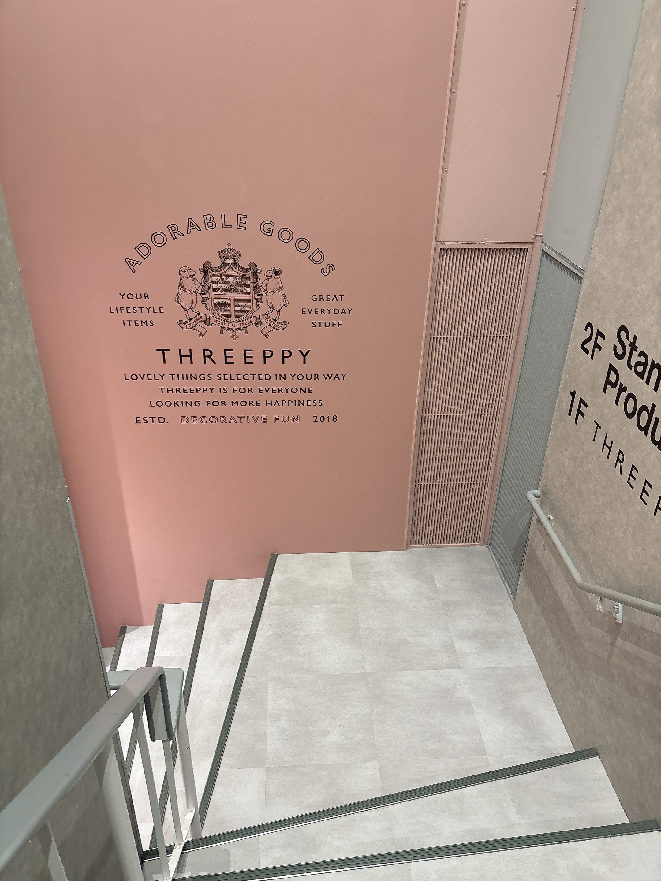 1Fは可愛らしい色合いのアイテムが揃う『THREEPPY』です。デザインも女性好みの雰囲気で、眺めているだけで心ときめきます。お部屋にあったらきっと癒されるだろうな~。