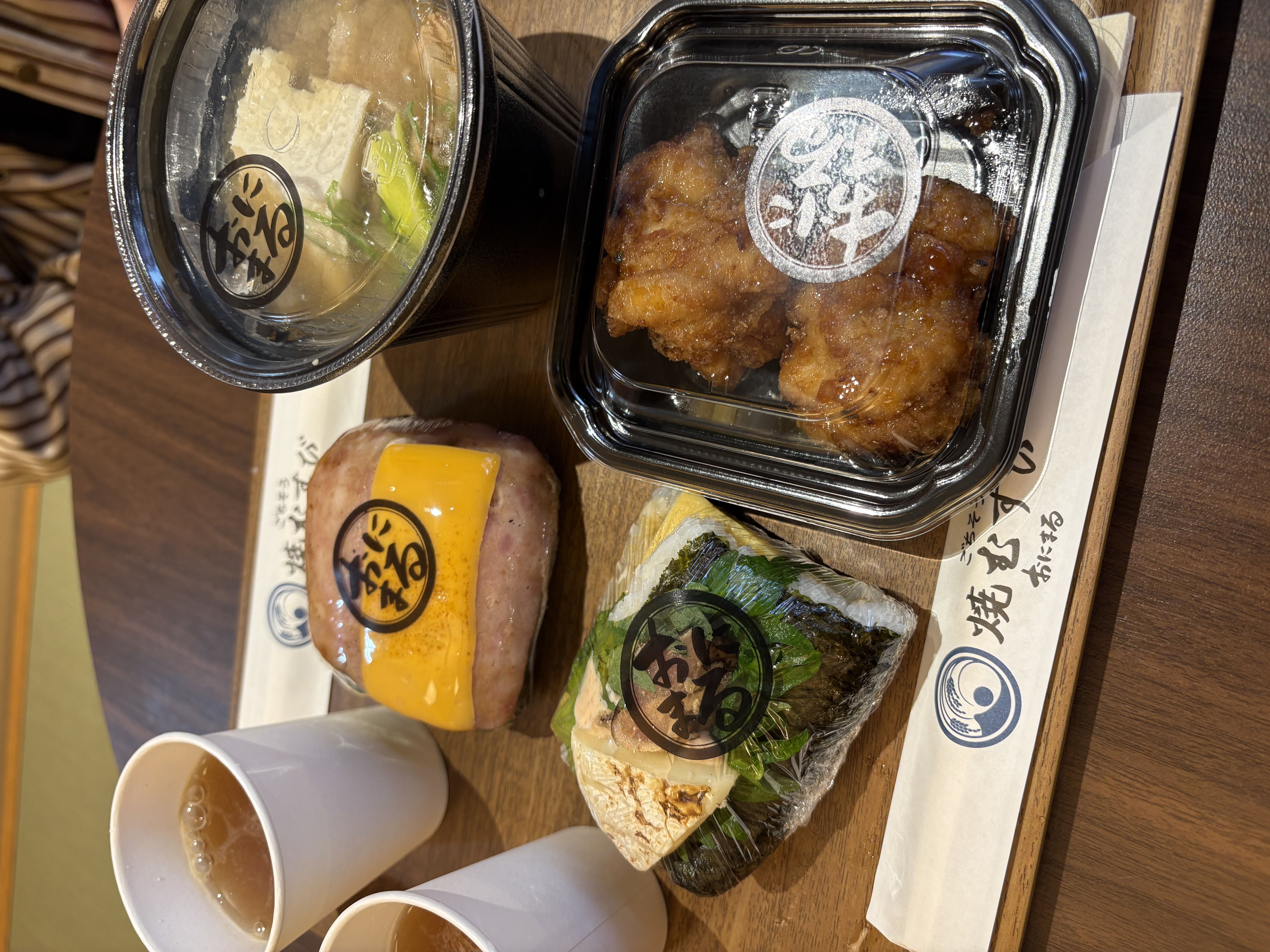 イートインスペースに出汁茶漬けを楽しめるセットが用意してあるので、おむすびをアレンジして楽しめるのも魅力です。カマンベールチーズが出汁にとろ~りととろけて、なんとも美味でした! 我ながらバッチリなチョイス(笑)。うなぎのおむすびでひつまぶし風もやってみたいなぁ。
