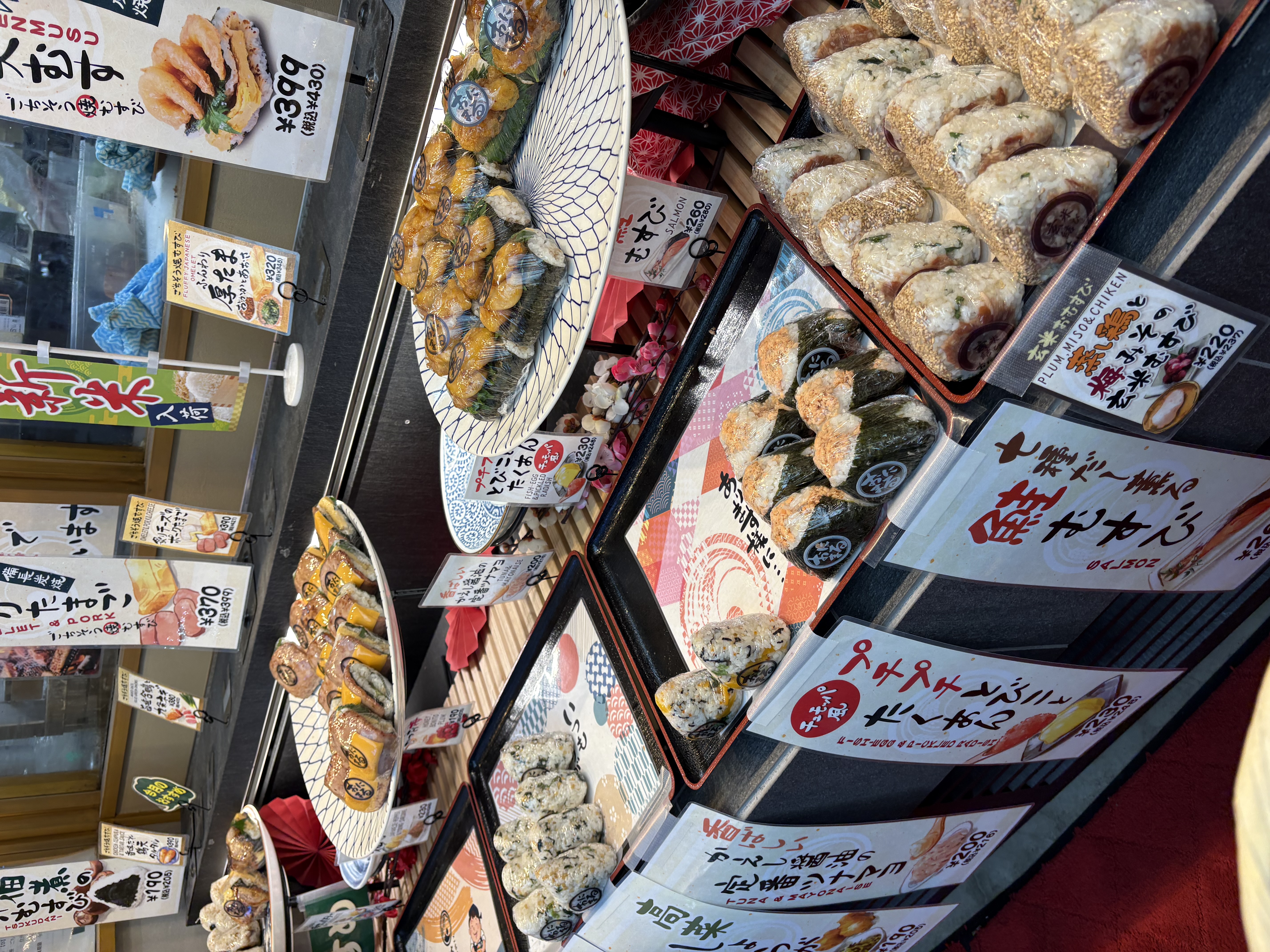 本通には、小学生も心ときめくスポットがたくさん。カプセルトイのショップを巡るのもいいですし、ステッカーショップの『B-SIDE LABEL』や『Sanrio』でお土産探しをするのも◎。お腹がすいたらファーストフードやカフェでご飯やおやつを♪ この日は、『ごちそう焼むすび おにまる 広島本通り店』でランチにしました。