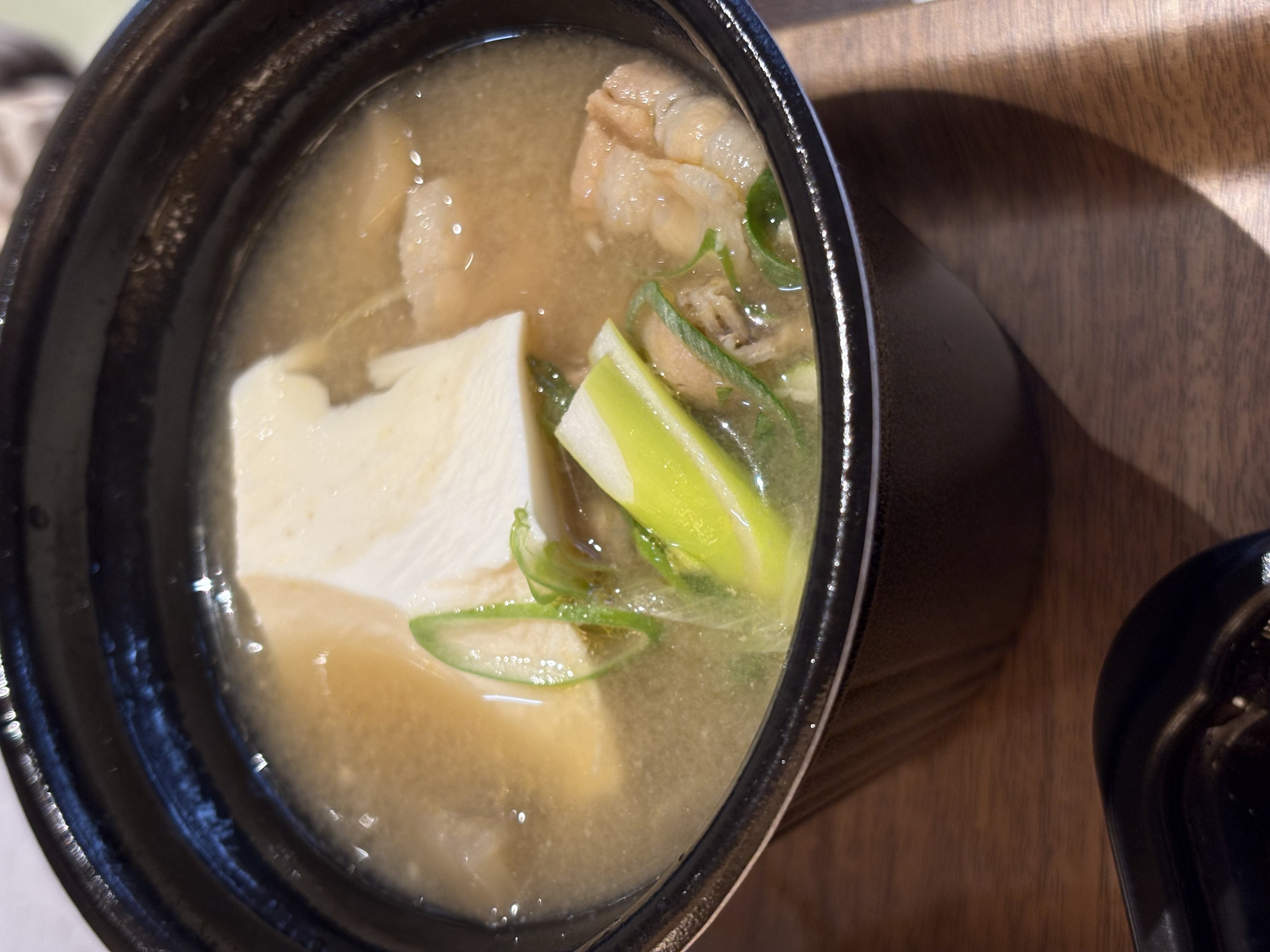 子どもは炙りチーズのポークたまご、私は炙りたらことカマンベールにしました。豚汁と唐揚げもシェアしていただきま~す♪